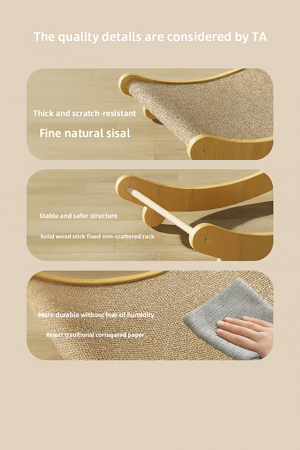 Crafted from 100% natural sisal, this cat scratcher is non-toxic, environmentally friendly, and free from messy paper shreds — perfect for clean, eco-conscious homes.