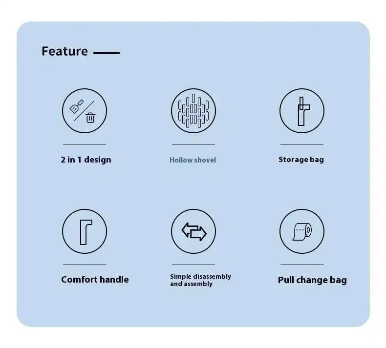 Equipped with a built-in garbage bag, waste is collected directly during scooping — keeping your hands clean and preventing direct contact. The enclosed design helps block unpleasant odors and maintain a hygienic living space.